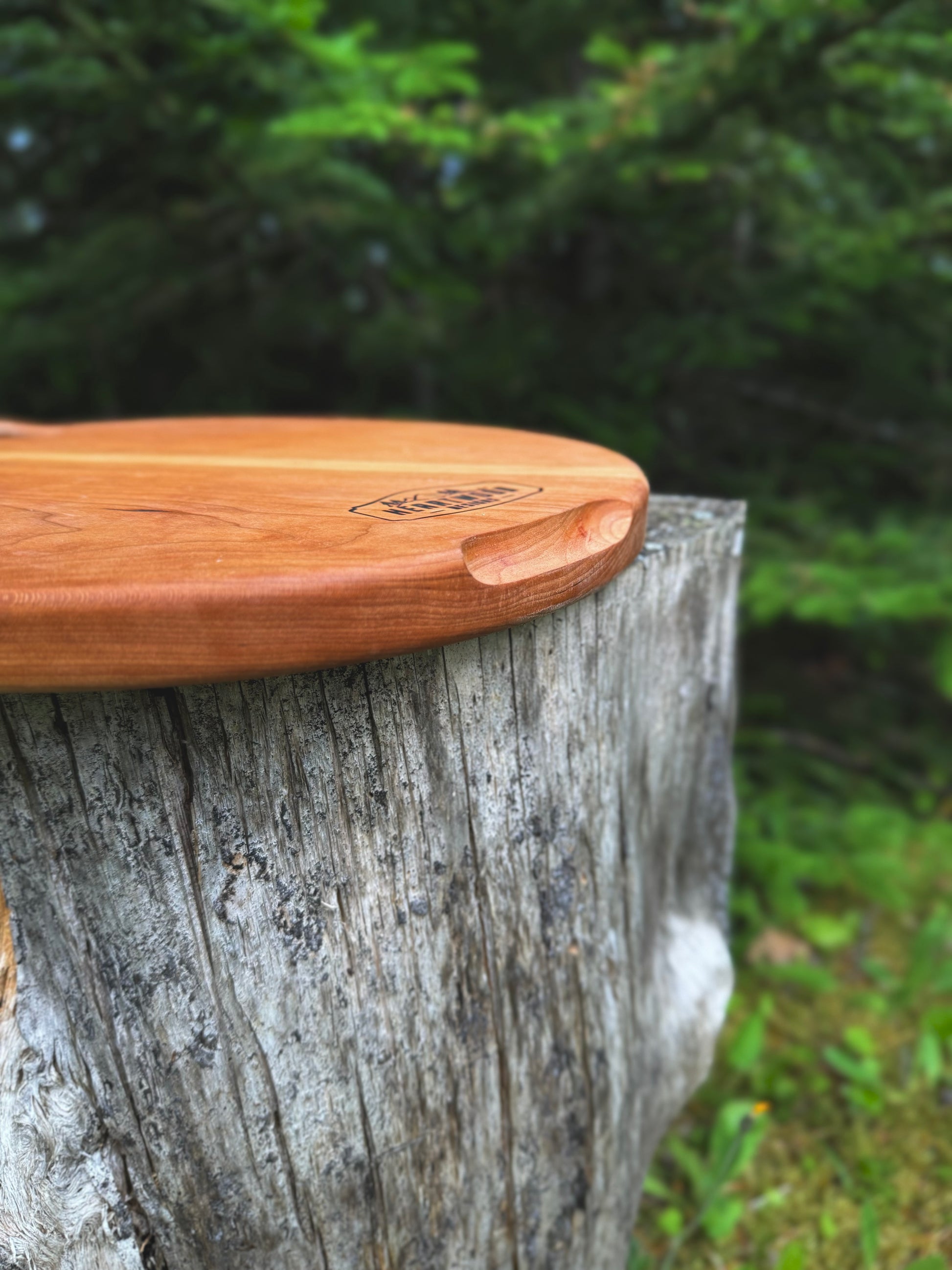 If charcuterie is your jam, look no further than this board! The best part of this board is the small lip around the perimeter of this piece, helping keep food contained. You’ll also find a routed handle grip on the underside of the board opposite the handle, for added grip when moving the board.