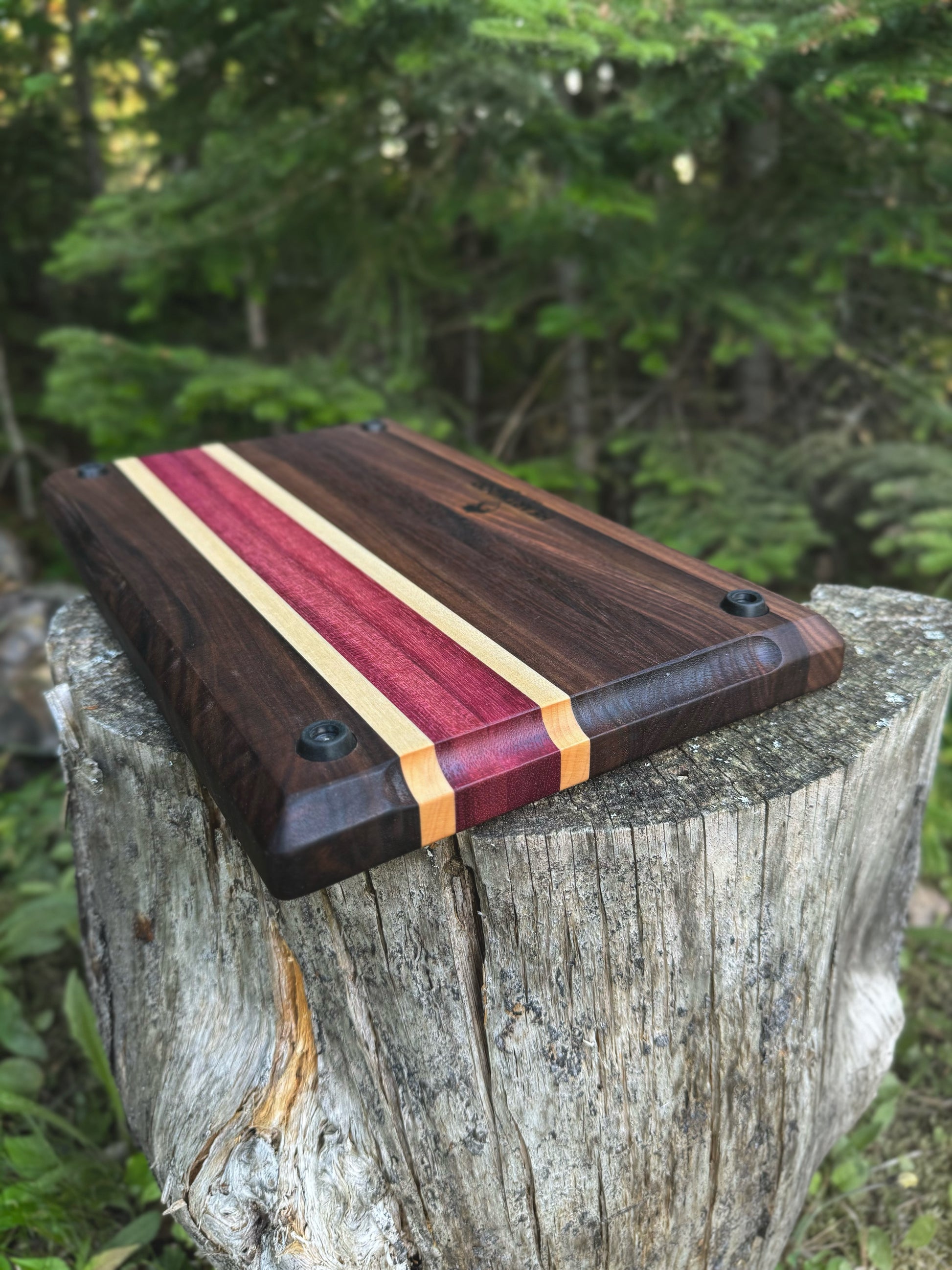 This handcrafted board is the ideal size for quick cutting tasks! You will find routed handles at either end on the bottom for added mobility. The bottom of this board features recessed rubber feet for increased stability when cutting.