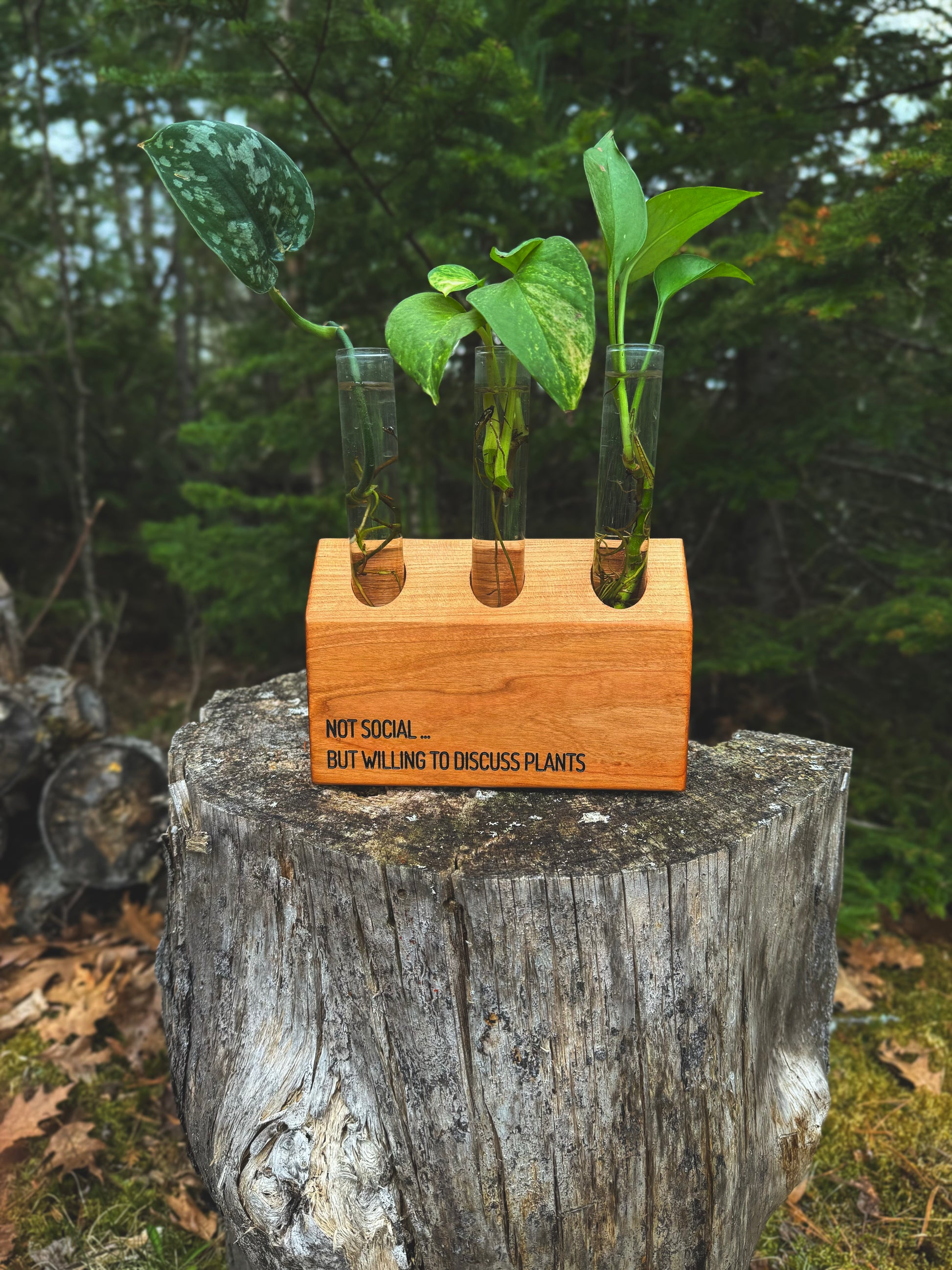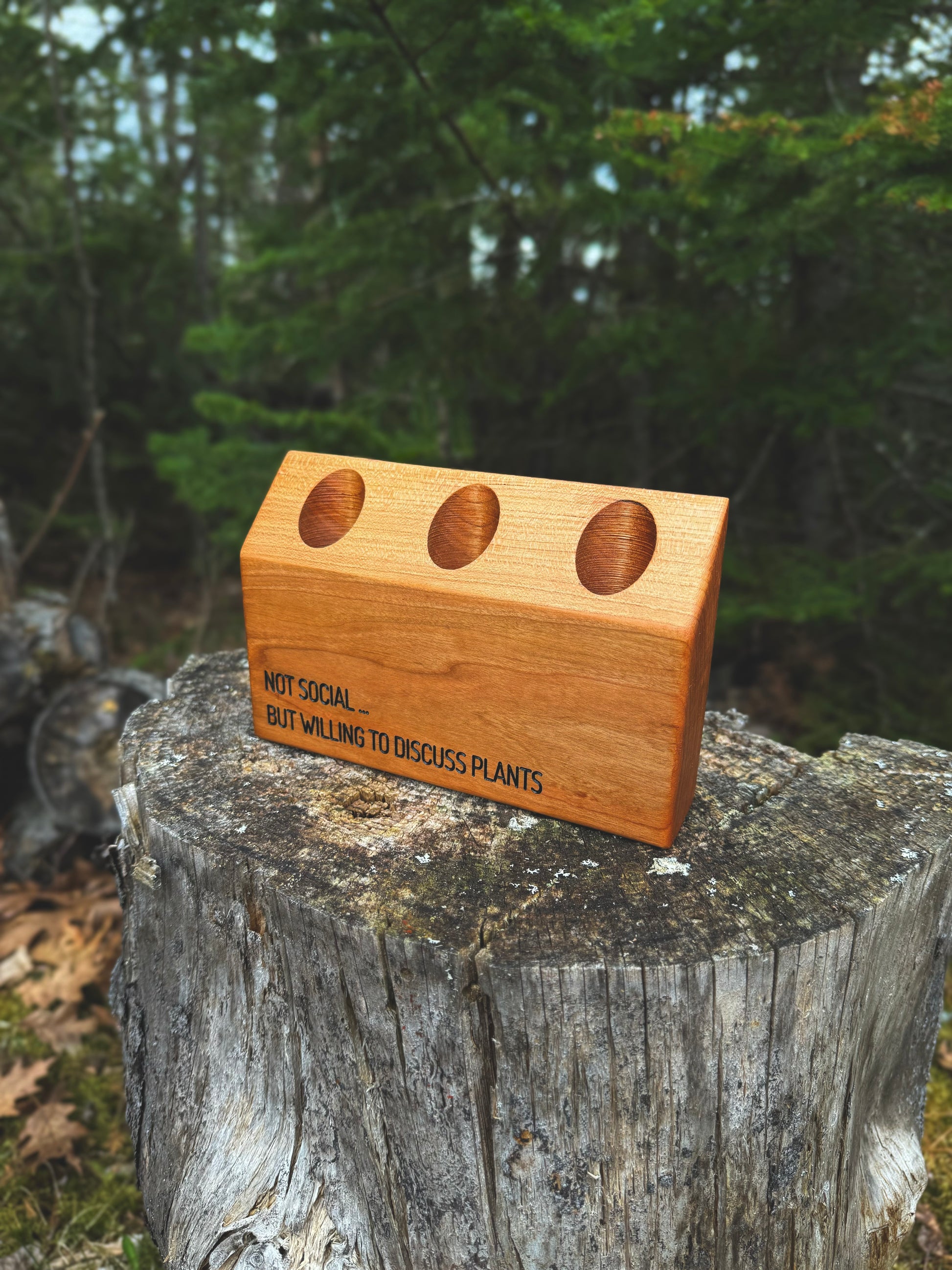 Custom engraved propagation station made with a solid piece of cherry. This station can hold 3 glass tubes with cuttings! Three glass tubes will be included!