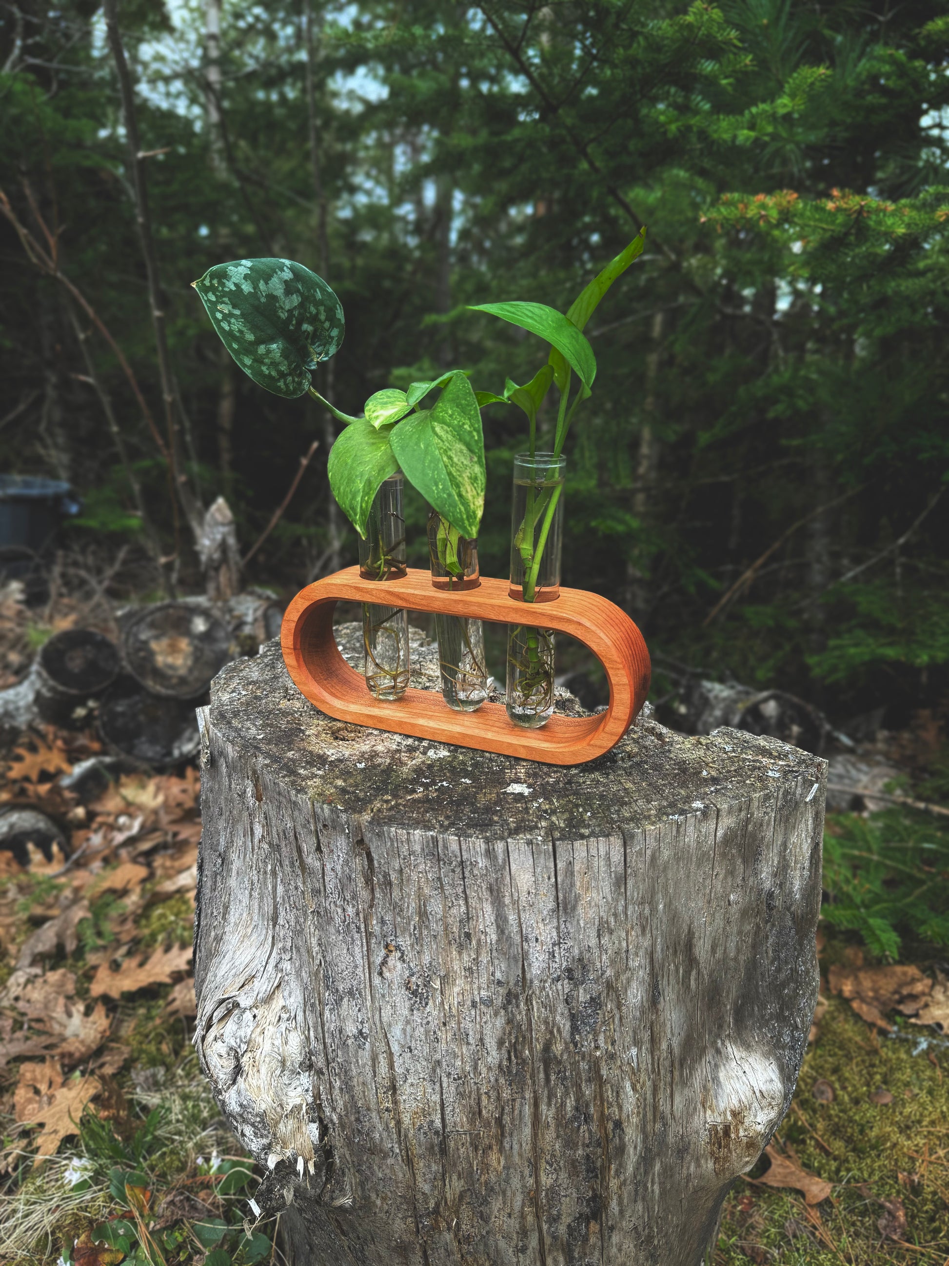 Custom retro 3 tube propagation station made with cherry. Watch root growth in style w this trendy propagation station!