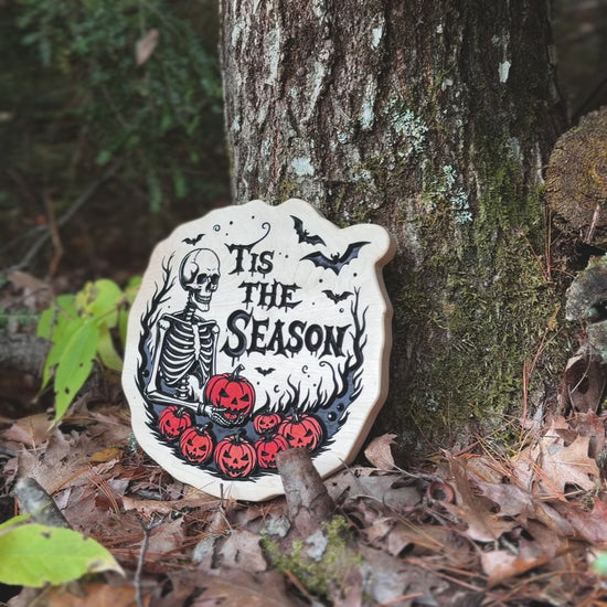 Spooky Halloween sign made with a single piece of hard maple. Pumpkins hand painted with water color and sealed with clear coat. Keyhole slot on back of sign for easy hanging.