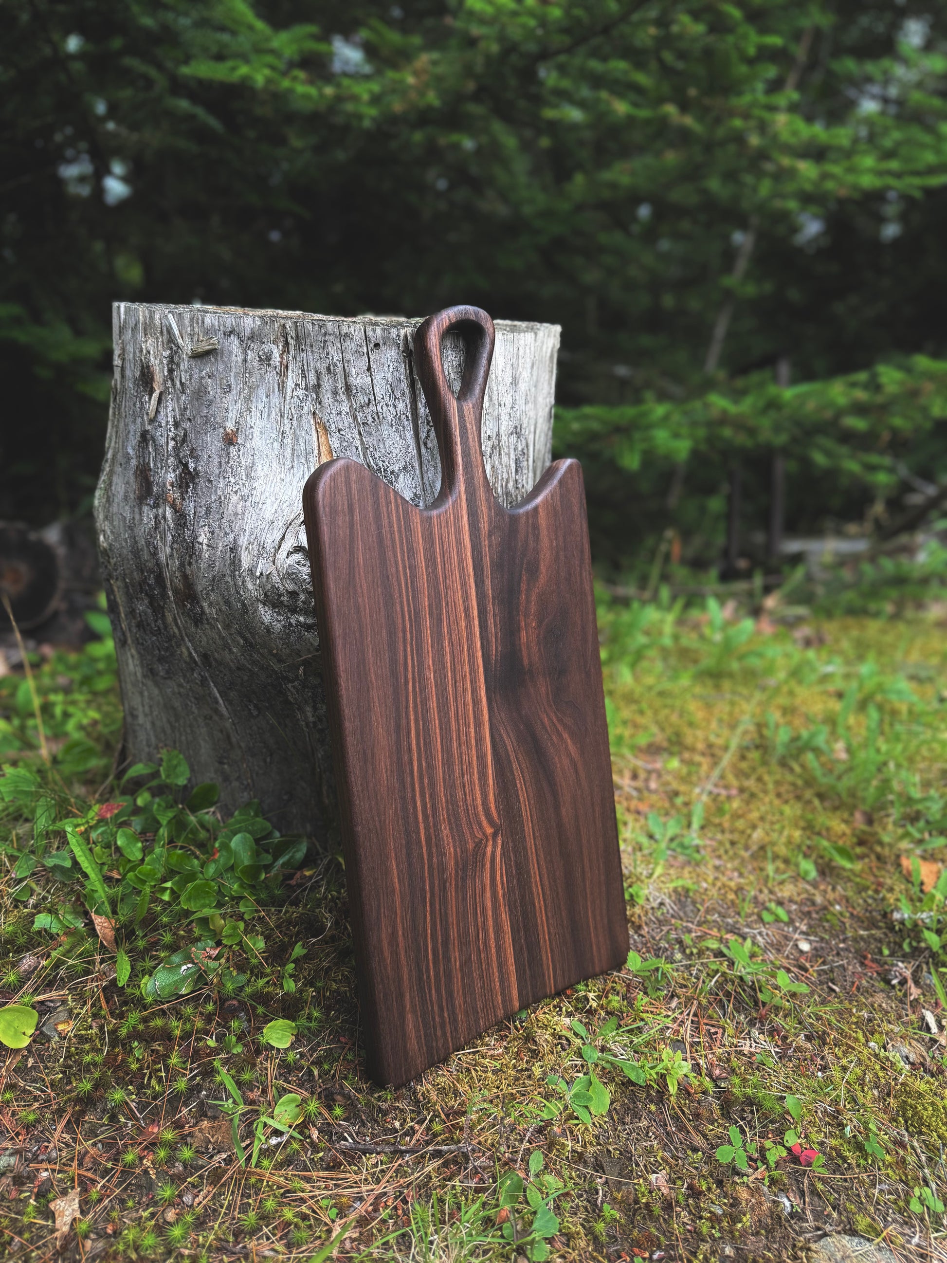 Handcrafted with high quality walnut, this cutting board features a handle on one end and a routed handle grip on the other for easy handling. Not only does it provide exceptional functionality, but its elegant design also adds a touch of beauty to your kitchen. Experience the perfect blend of style and practicality with this walnut board.